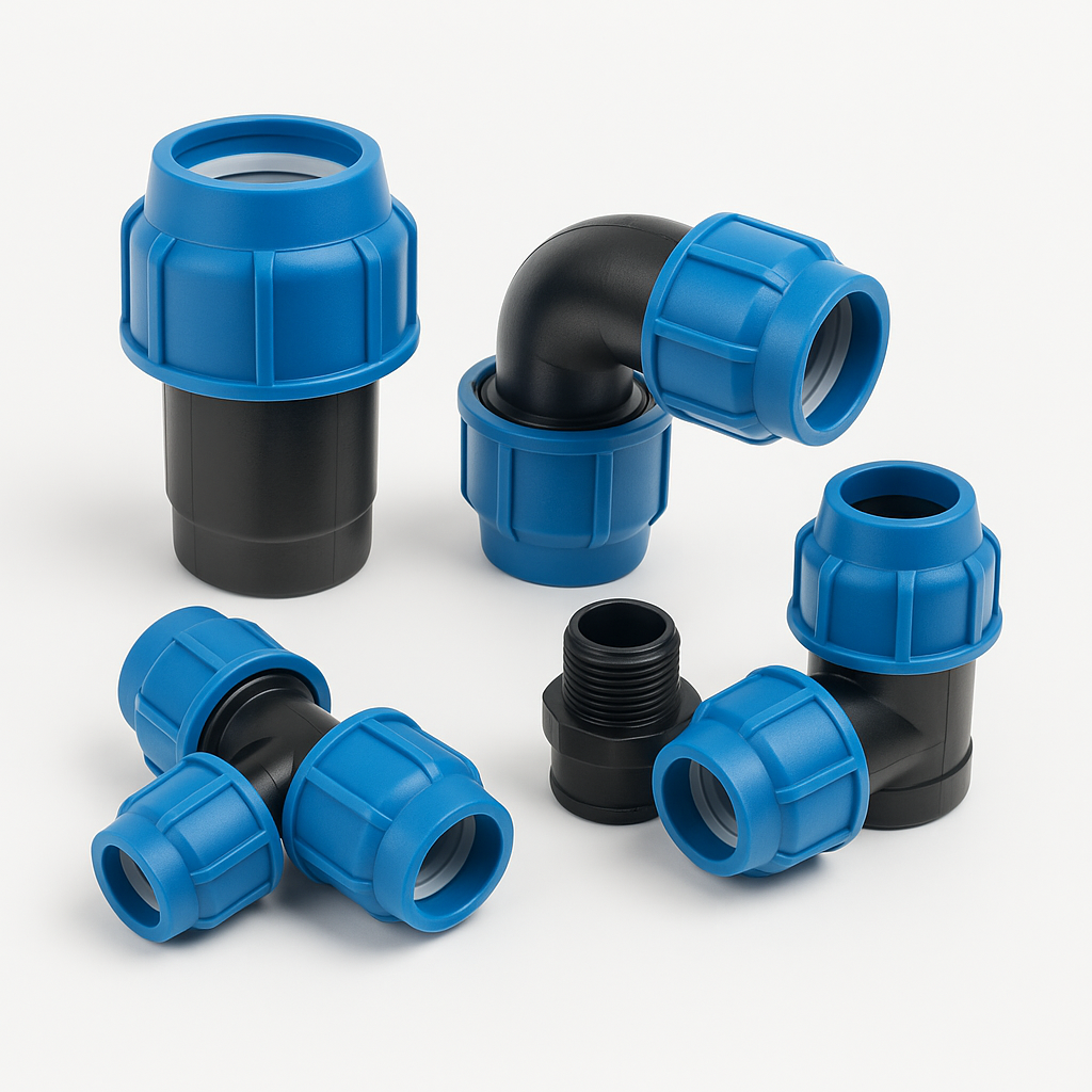 • Disponibles en múltiples formatos: tees, codos, uniones, tapones, válvulas y adaptadores.