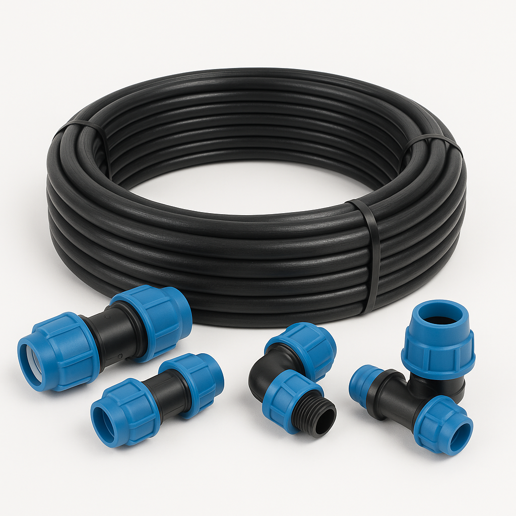La tubería de polietileno y sus accesorios forman sistemas completos para la conducción de agua, gas y fluidos industriales. Fabricados en polietileno de alta densidad (PEAD), ofrecen resistencia a la presión, durabilidad y protección contra la corrosión, garantizando un flujo continuo y seguro en redes hidráulicas, agrícolas y de saneamiento.